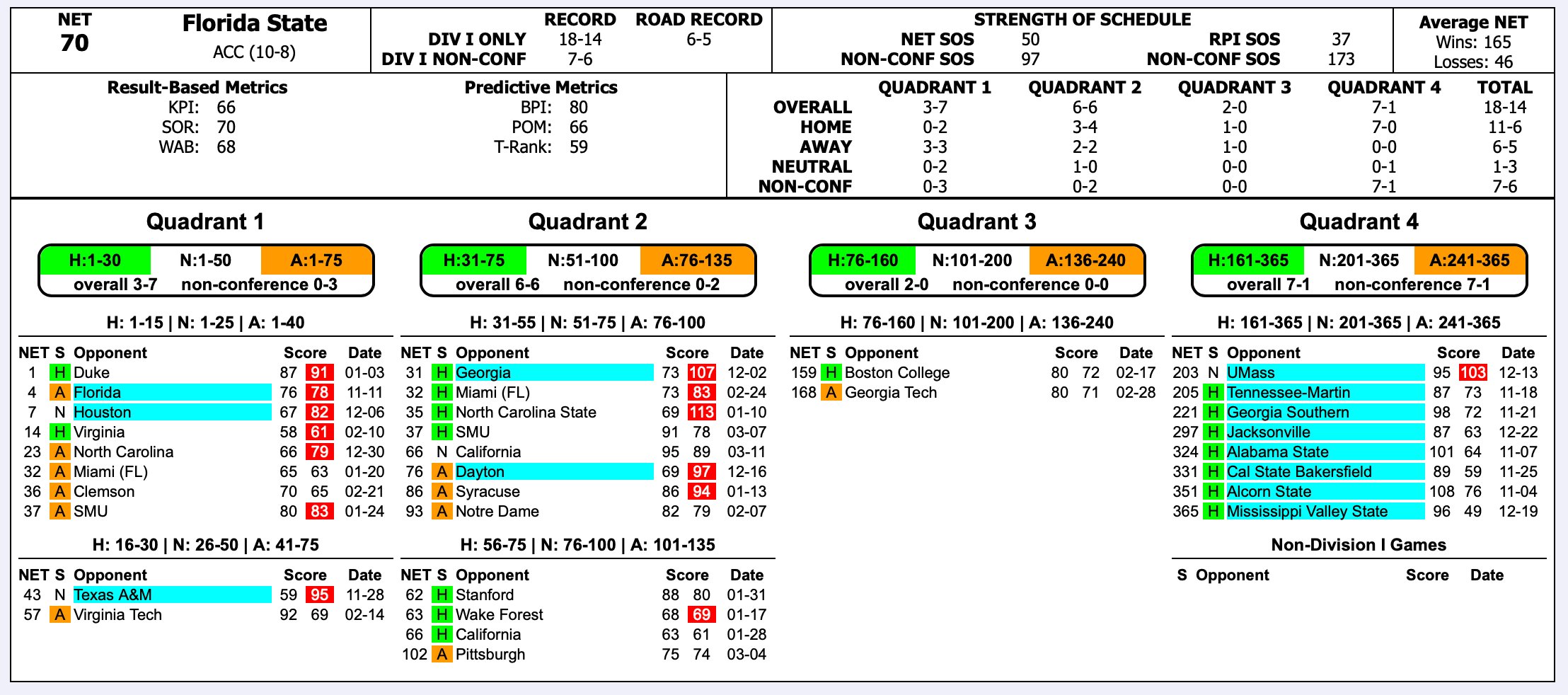 NET and WAB are always current as of the previous day. Records are always up to date. Thanks as ever to Warren Nolan for his immensely helpful site.
