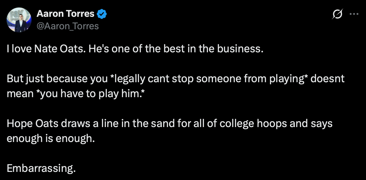 Of course Nate Oats knew. It was his decision! According to Field of 68’s Jeff Goodman, Oats is planning to play Bediako Saturday against Tennessee. Of course he is! And everyone already knows why: Because Nate Oats doesn’t give an orbital fuck what you think, or how much you love this sport, or whether college basketball has enforceable rules, or anything else in the world that doesn’t involve Nate Oats-coached teams winning games.