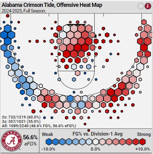 To wit, here’s Alabama’s shot chart from the 2024-25 season: